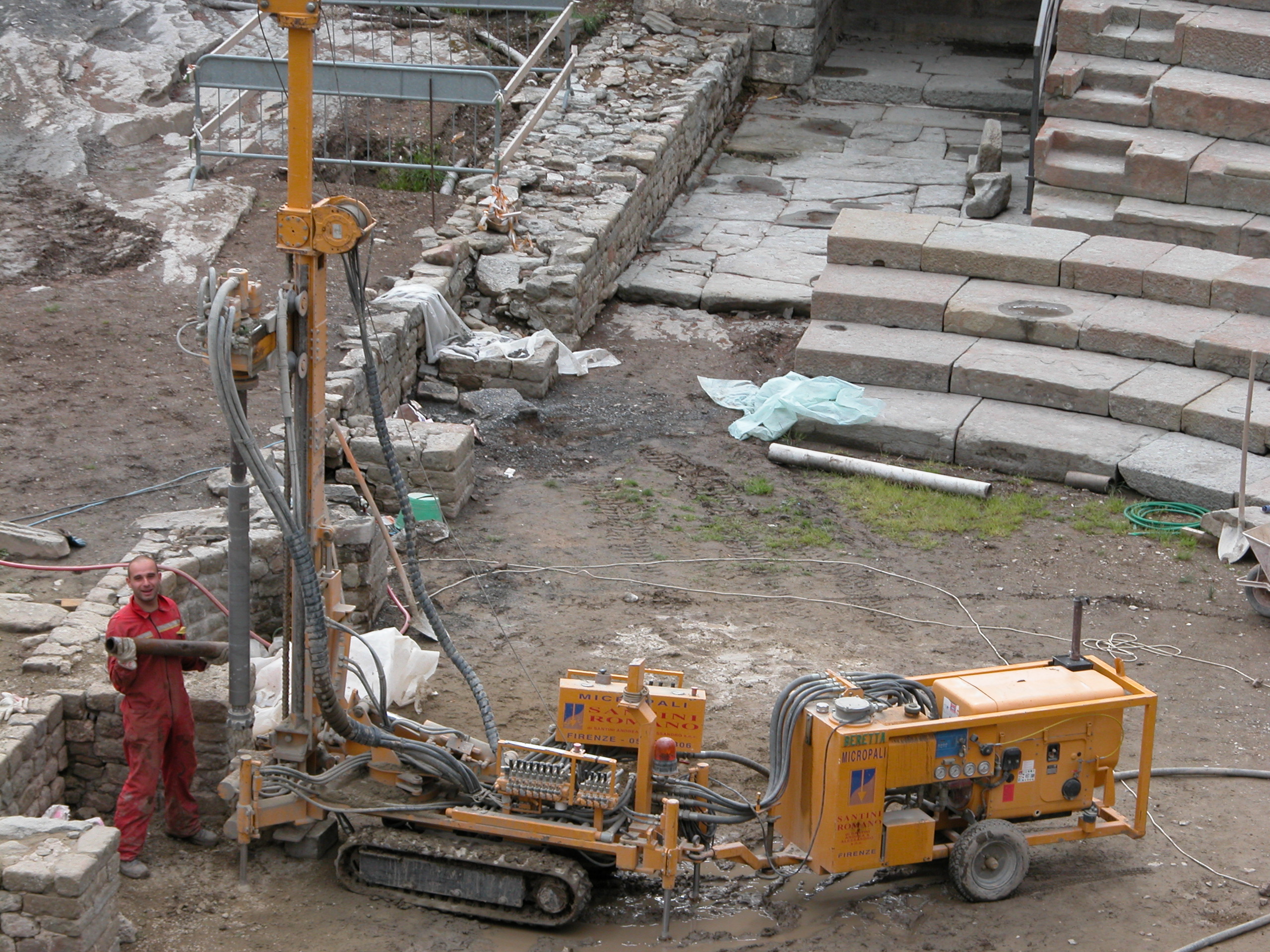 La Santini Romano si occupa anche dell’inserimento di pali per rinforzare la stabilità della struttura e per il consolidamento delle fondazioni. Interveniamo là dove ci siano strutture con cedimenti dovuti a movimenti del terreno (terreni franosi, argillosi), strutture datate che non hanno fondamenta o strutture nuove da costruire su terreni particolari. Le macchine che utilizziamo sono trivelle installate su particolari mezzi che riescono ad entrare all’interno della struttura e quindi dalle dimensioni ridotte. La profondità massima di perforazione è di 10-15 metri e il loro diametro massimo è di 200 mm.